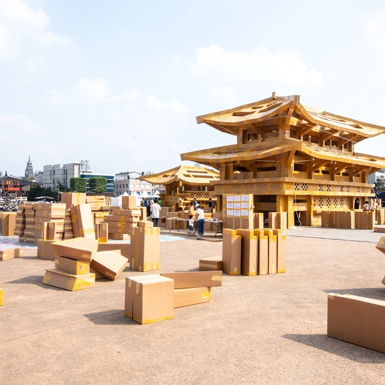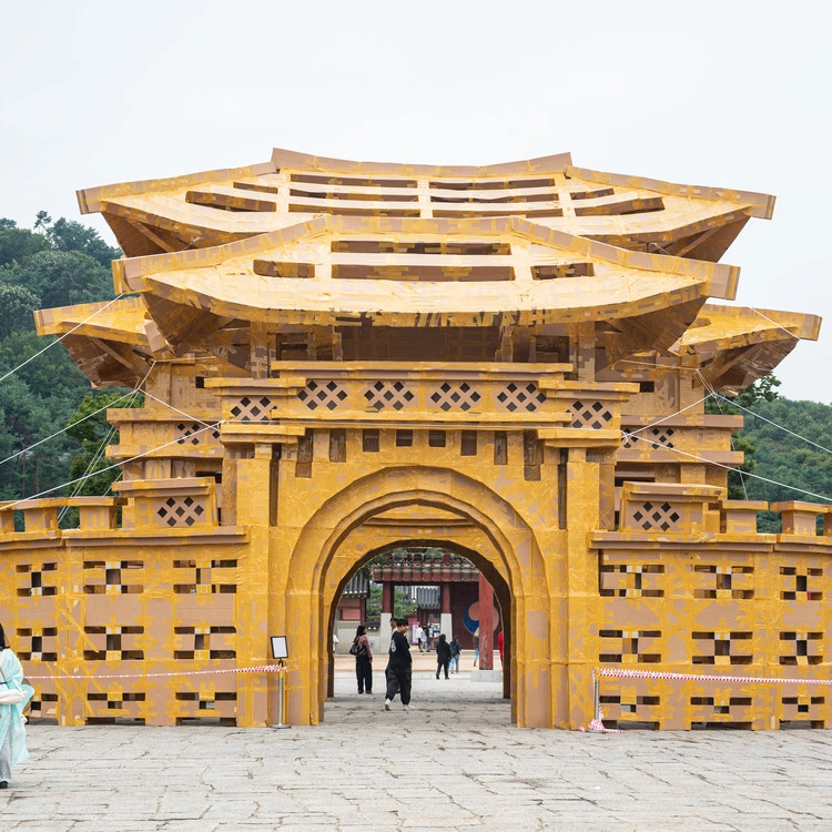 由法国代表性社区艺术家奥利维尔·格罗塞特携手全球市民共同完成的超大型纸质结构表演!在水原华城行宫广场上上演的特别集体建筑活动。